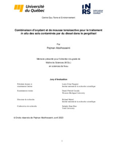 Abolhosseini, Pejman (2023). Combinaison d'oxydant et de mousse tensioactive pour le traitement in situ des sols contaminés par du diesel dans le pergélisol. Mémoire. Québec, Maîtrise en sciences de l'eau, Université du Québec, Institut national de la recherche scientifique, 133 p.