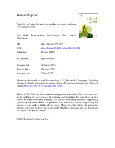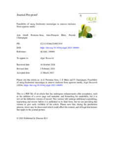 Feasibility of using freshwater microalgae to remove triclosan from aqueous media.