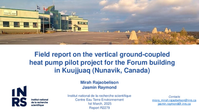 - Field report on the vertical ground-coupled heat pump pilot project for the Forum building in Kuujjuaq (Nunavik, Canada) (déposé le 07 janv. 2026 16:37) [Actuellement Affiché]