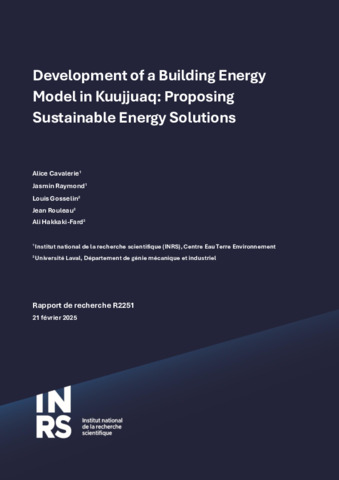 | Mots-clés libres: | systèmes de pompe à chaleur géothermique assistée par l'énergie solaire; SAGCHP; communautés nordiques isolées; transition énergétique; Forum de Kuujjuaq; Nunavik; climat subarctique; modélisation énergétique; simulation thermique |