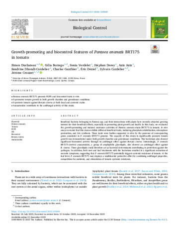 Growth-promoting and biocontrol features of Pantoea ananatis BRT175 in tomato