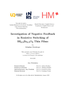 Obernberger, Sebastian (2025). Investigation of Negative Feedback in Resistive Switching of Hf0.5Zr0.5O2 Thin Films. Mémoire. Québec, Munich, Institut national de la recherche scientifique / Munich University of Applied Sciences, Maitrise en sciences de l'énergie et des matériaux, 100 p.
