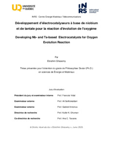 Ghasemy, Ebrahim (2025). Developing Nb- and Ta-based electrocatalysts for oxygen evolution reaction. Thèse. Québec, Université du Québec, Institut national de la recherche scientifique, Doctorat en sciences de l'énergie et des matériaux, 143 p.